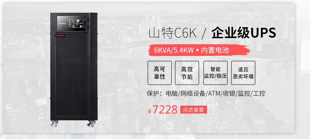 • 商品名称:山特(SANTAK) 山特C6K ups不间断电源在线式稳压6KVA/5.4KW 液晶屏 全国联保