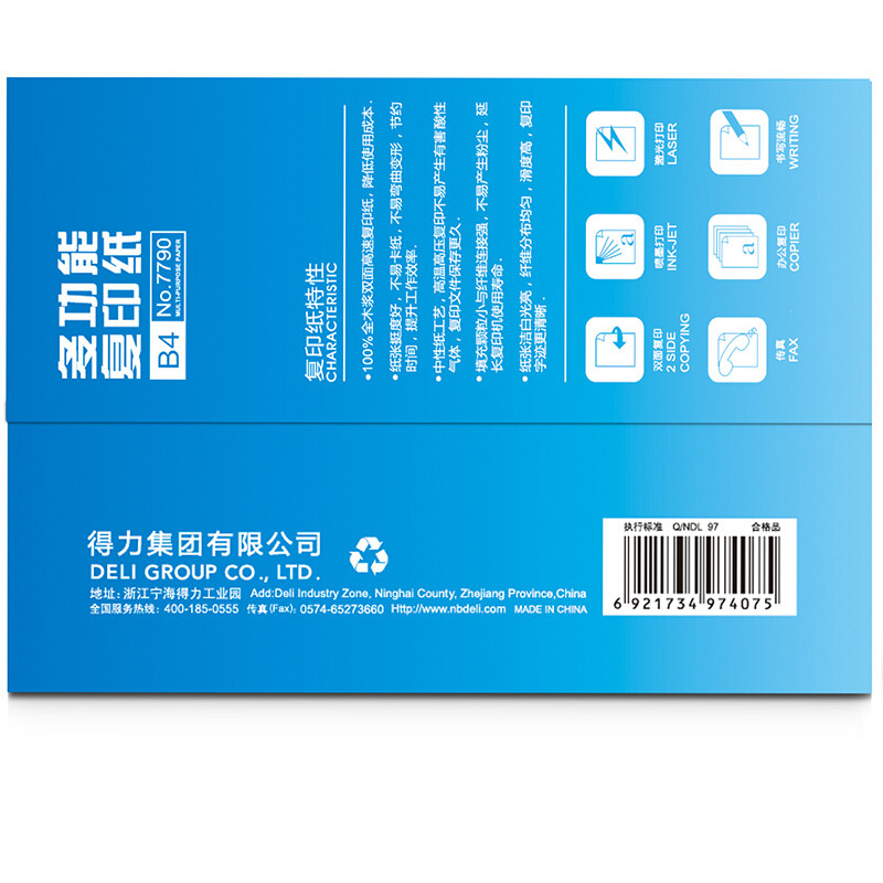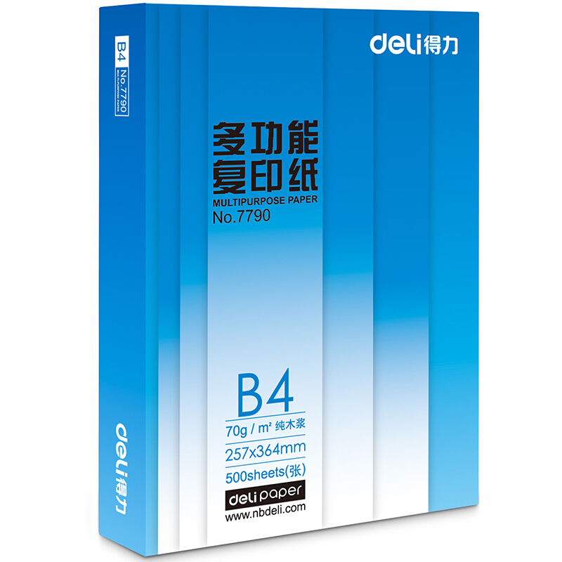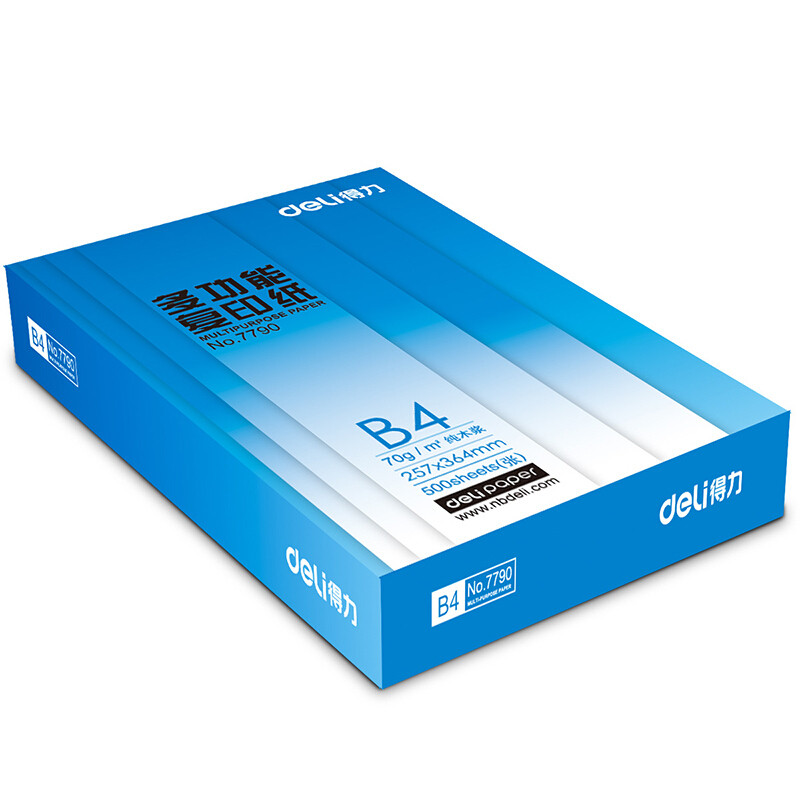 • 商品名称:得力(deli) 7790 B4 莱茵河复印纸 70g 500张/包 单包装