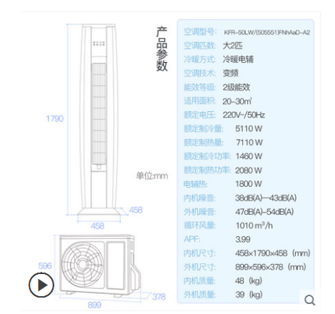 • 商品名称:Gree/格力 KFR-50LW/(505551)FNhAaD-A2 2匹智能冷暖变频柜机空调