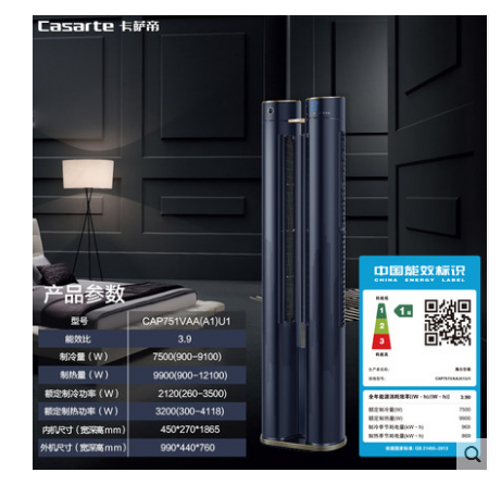 • 商品名称:Casarte/卡萨帝 CAP751VAA(A1)U1 温冷感知柔湿抑菌3匹柜机空调