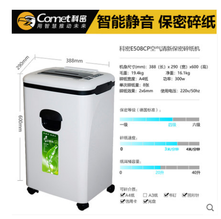 • 商品名称:科密E508CP 碎纸机办公大功率碎光盘静音家用环保空气净化机器