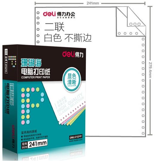 • 商品名称:得力(deli)珊瑚海白色电脑打印纸S241-2二层整张80列 (不撕边 色序:全白 1000页/箱)