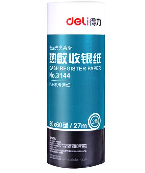得力(deli)80mm*60mm热敏收银纸/收银机打印纸/超市小票打印纸 27米/卷 50卷/箱 3144