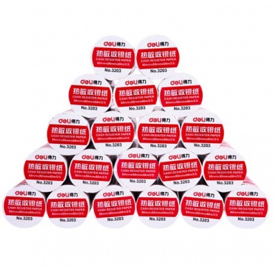 • 商品名称:得力(deli)80mm*80mm热敏收银纸/收银机打印纸/超市小票打印纸 59米/卷 40卷/箱 3203