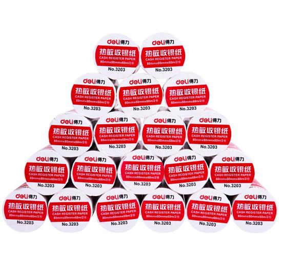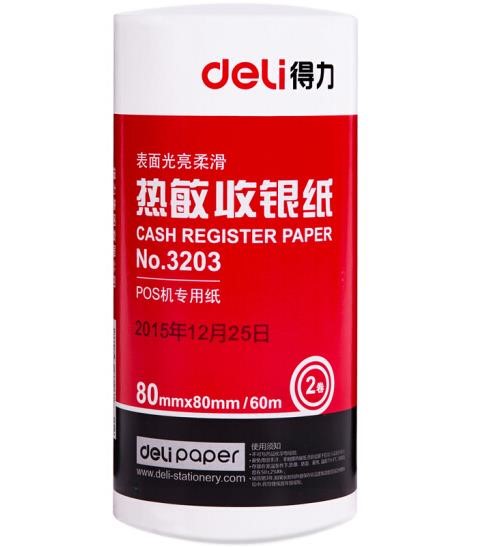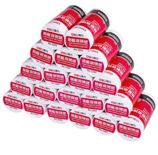 得力(deli)80mm*80mm热敏收银纸/收银机打印纸/超市小票打印纸 59米/卷 40卷/箱 3203