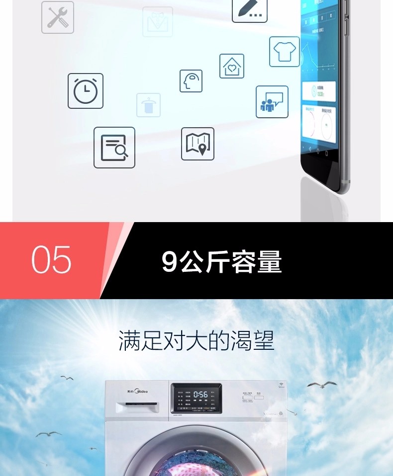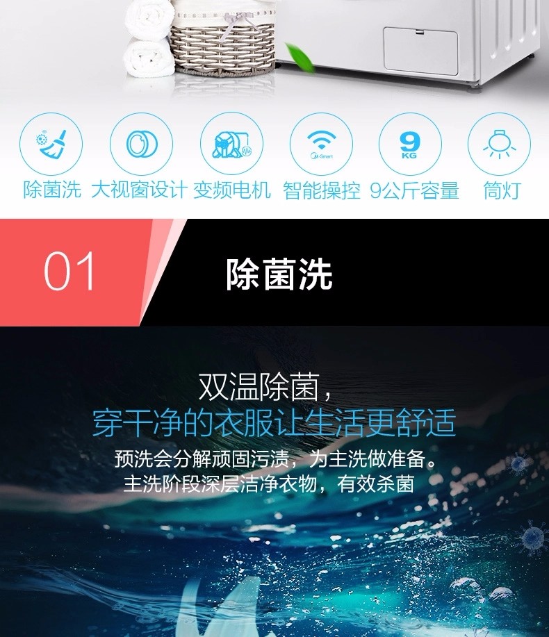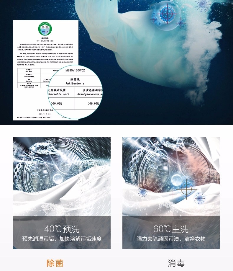 • 商品名称:滚筒洗衣机 9KG变频 除菌洗 大容量 智能操控 MG90V130WDX